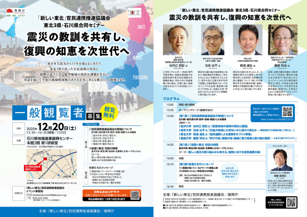 令和7年度「新しい東北」東北3県・石川県合同セミナー「つながりのその先へ ~震災の教訓を共有し、復興の知恵を次世代へ~」開催